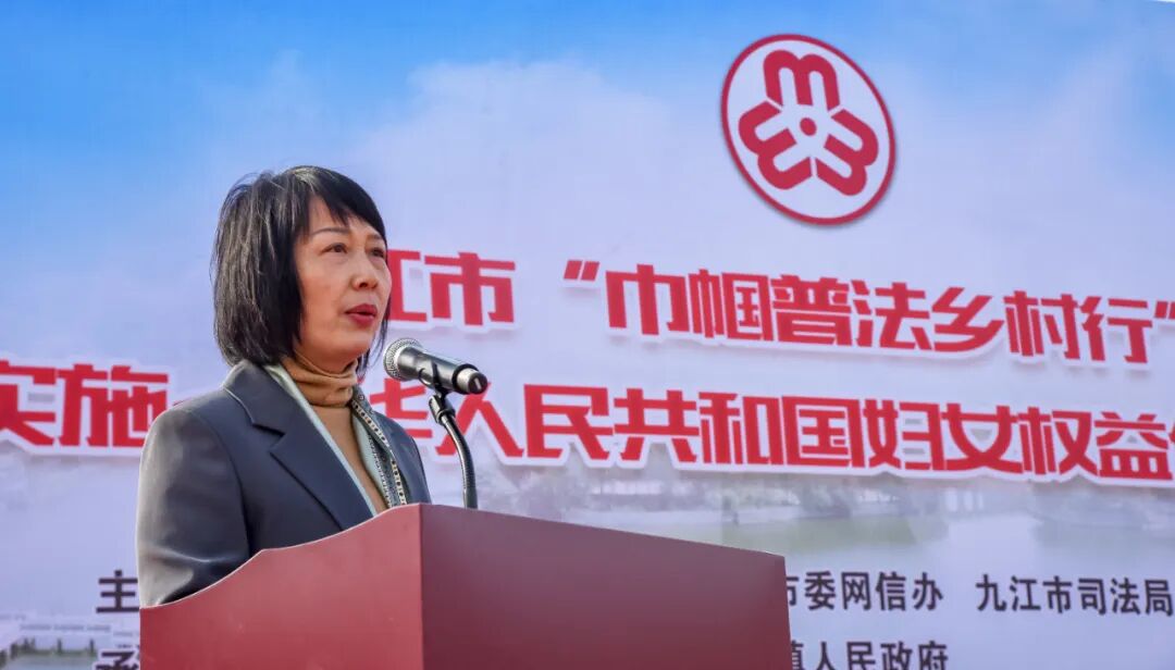 桂白丽指出,开展“巾帼普法乡村行”是贯彻落实习近平法治思想和习近平总书记关于妇女儿童和妇联工作的重要论述精神的具体举措,要深刻认识开展“巾帼普法乡村行”的重要意义,提高政治站位,持续全面推进法治宣传教育向纵深发展,助力“巾帼普法乡村行”提质增效;要积极推动《中华人民共和国妇女权益保障法》和《江西省实施<中华人民共和国妇女权益保障法>办法》的宣传贯彻,以群众喜闻乐见的方式大力宣传与妇女群众生活息息相关的法律法规,同时把家庭家教家风建设、移风易俗、维权关爱等工作融入其中,为维护妇女儿童合法权益营造良好法治环境;要同向发力共同助推平安九江建设,各级妇联组织要主动加强与相关单位的联动,广泛发动巾帼普法志愿者参与到活动中,构建各部门同心协力、社会力量共同参与的工作格局,切实推动巾帼普法与基层社会治理、平安家庭建设、乡村全面振兴有机结合。